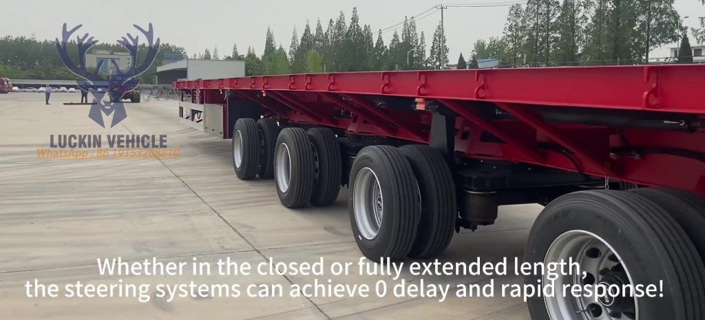 ✤ Technology, we are continuously innovating! In order to meet the demands of complex road transport conditions and enhance your efficiency in using the blade transport vehicle, Luckin Trailer has developed an advanced automatic steering system for our 70m extendable trailer. Whether in the closed or fully extended length, the steering systems can achieve zero delay and rapid response! This ensures that you will enjoy a more comfortable and efficient experience during use. Luckin Trailer is committed to providing you with excellent technical support!